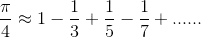 π的近似值,知道发现某一项的绝对值小于10的负6次幂为止(该项不累加)。