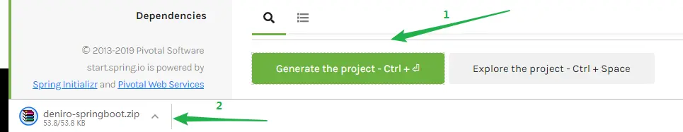 最后点击 “Generate the project”,就会按照上面的配置,导出基于 Spring Boot 的项目结构: