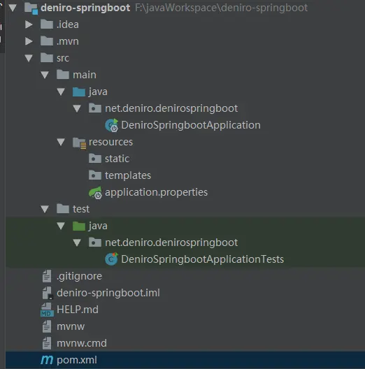 不管是基于 Spring Initializr 官网,还是基于 IntelliJ IDEA 初始化的项目,都会生成以下类似结构: