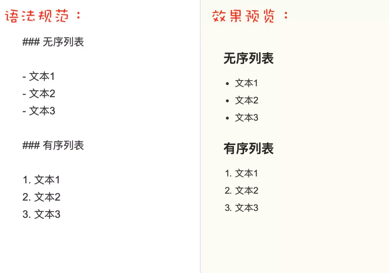 - 标准语法:使用-符,在文本前加入-符即可。