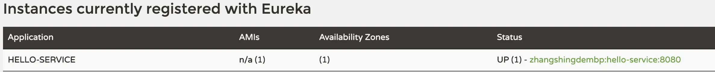 启动应用并访问http://localhost:8761/,可以看到服务的注册信息,如下所示: