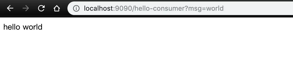启动应用并访问http://localhost:9090/hello-consumer?msg=world,如下图所示: