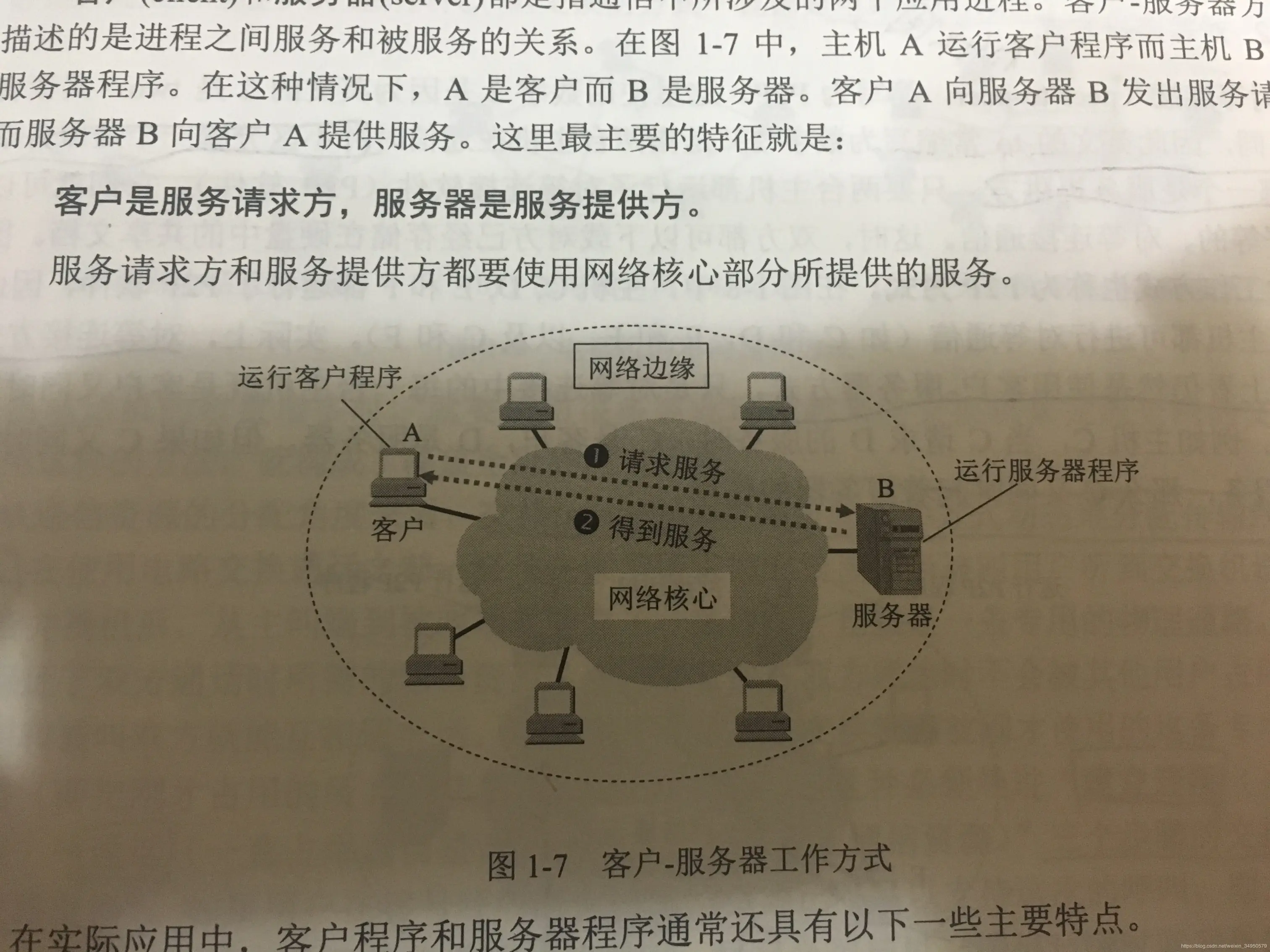 - 客户服务器指通讯中两个进程,客户是服务请求方,服务器是服务提供方。