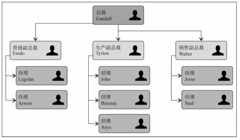 树是一种非顺序数据结构,一种分层数据的抽象模型,它对于存储需要快速查找的数据非常有用,现实生活中最常见的树的例子是家谱,或是公司的组织架构图,如下图: