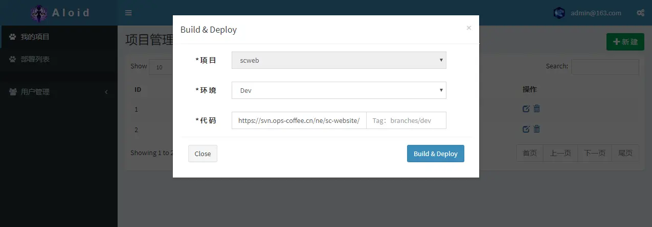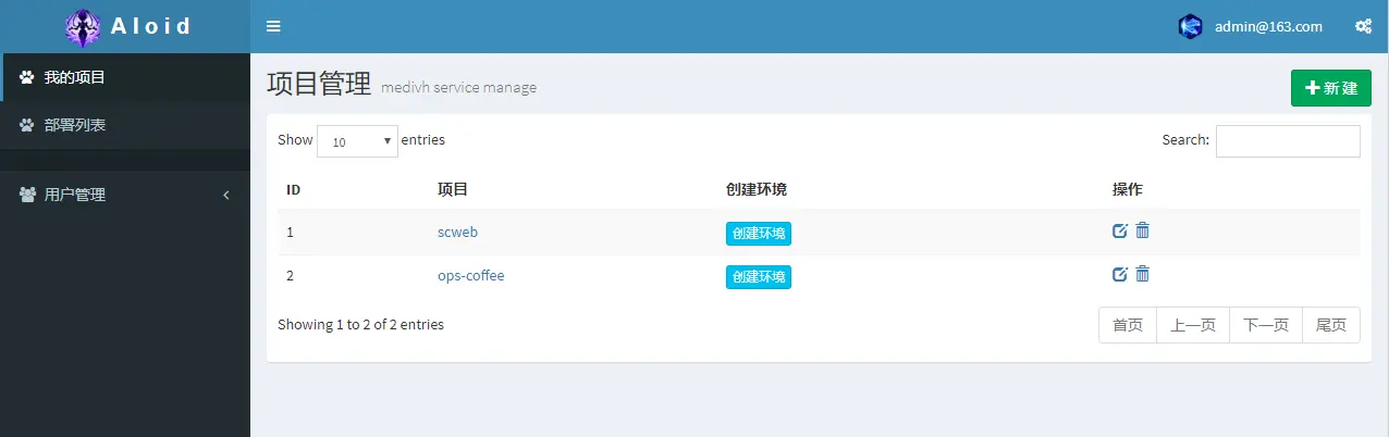 项目管理页:在这个页面内可以新建、编辑和删除项目