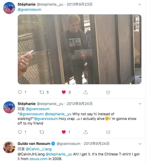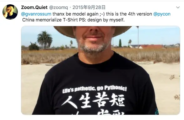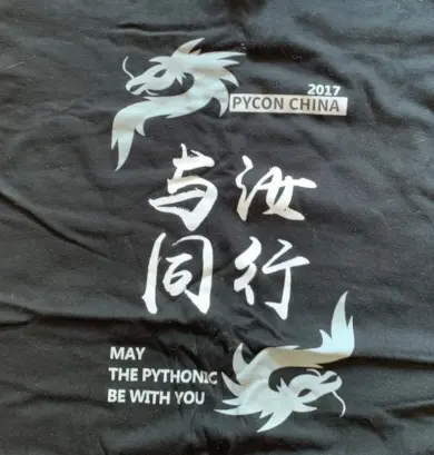 是的, 后来一直使用的 毛毛虫双龙 logo, 就是首届 PyCon中国大会 出现的;设计师, 也是纪念 Tee 的设计者, 来自新加坡一位Python工程师的老婆.
