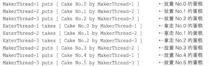 MakerThread类一样,EaterThread也会暂停一段随机长的时间。这段暂停时间模拟的是