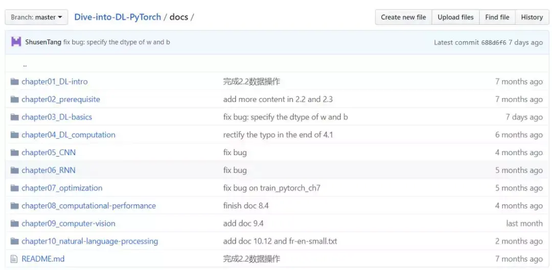 项目作者表示,该仓库主要包含 code 和 docs 两个文件夹。其中 code 文件夹就是每章相关 jupyter notebook 代码(基于 PyTorch);docs 文件夹就是 markdown 格式的《动手学深度学习》书中的相关内容,它也是基于 PyTorch 的。