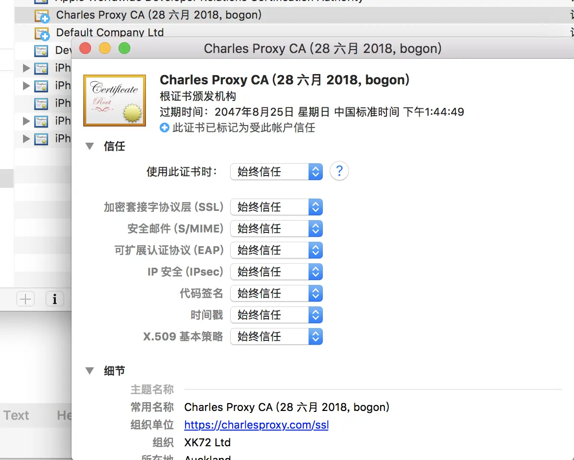 在钥匙串中信任证书