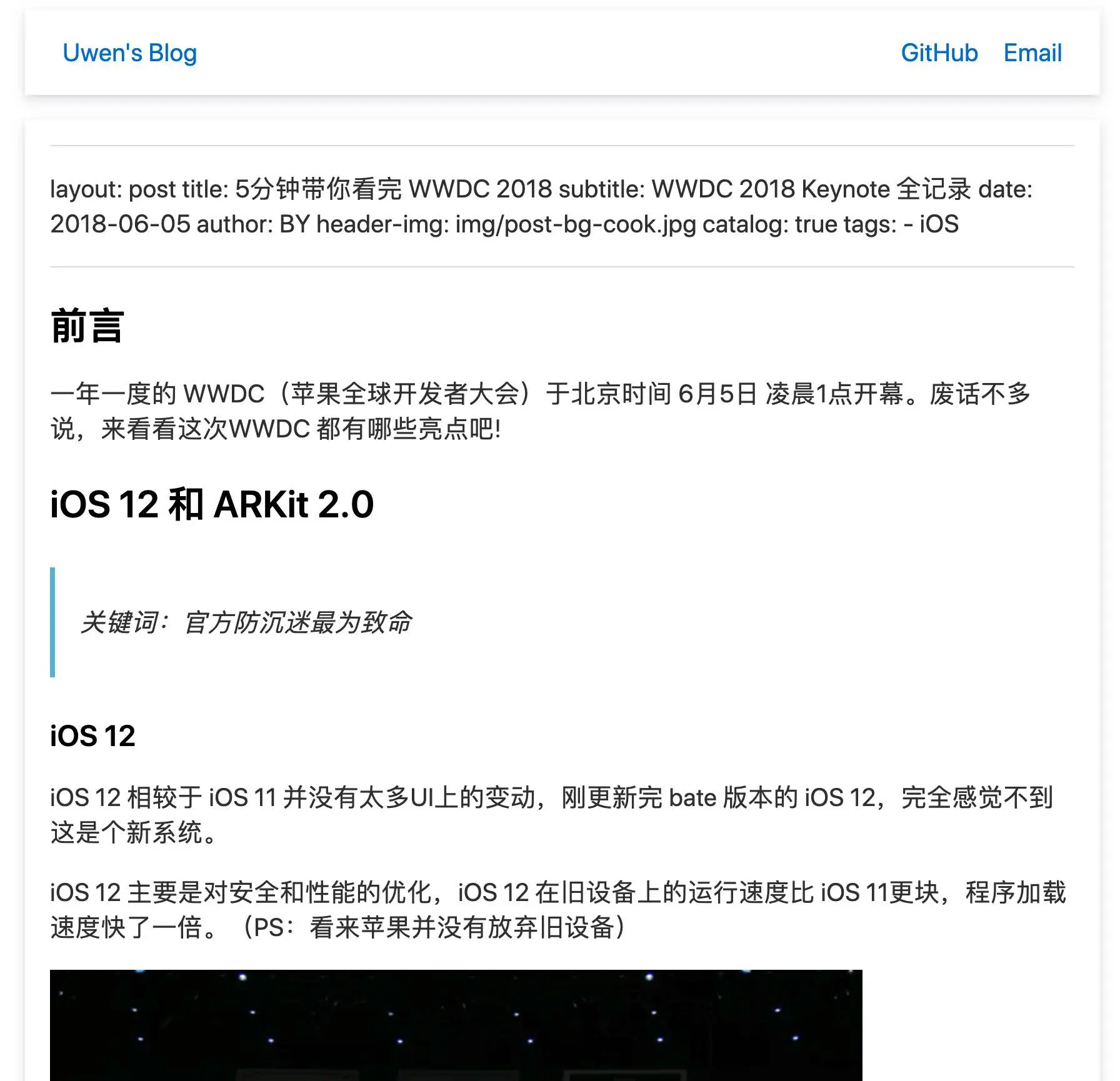 类似GitBook或者VuePress之类的工具往往需要自己声明一个”目录”来提供文章列表,而这里通过把博文都存在一个文件夹里面,再在文件名前面加上日期,就可以通过Github的API来获取文章列表: Contents | GitHub Developer Guide