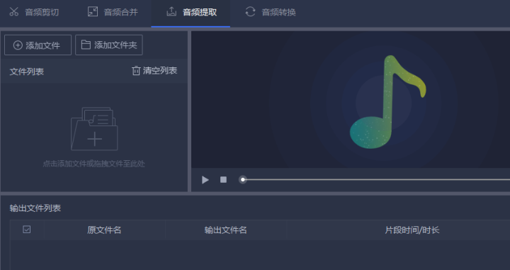1、首先要打开音频转换器并把功能栏中默认的音频剪切功能调整为音频提取功能,此步虽易但我们常常忘记一些简单的步骤,所以特别提醒一下调整功能栏的功能。