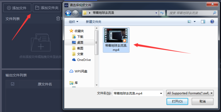 2、随后点击功能栏下方的添加文件/添加文件夹按钮或以拖拽的方式把视频添加到软件中,由于添加的方法有很多种,添加时可以根据习惯选择添加的方式。