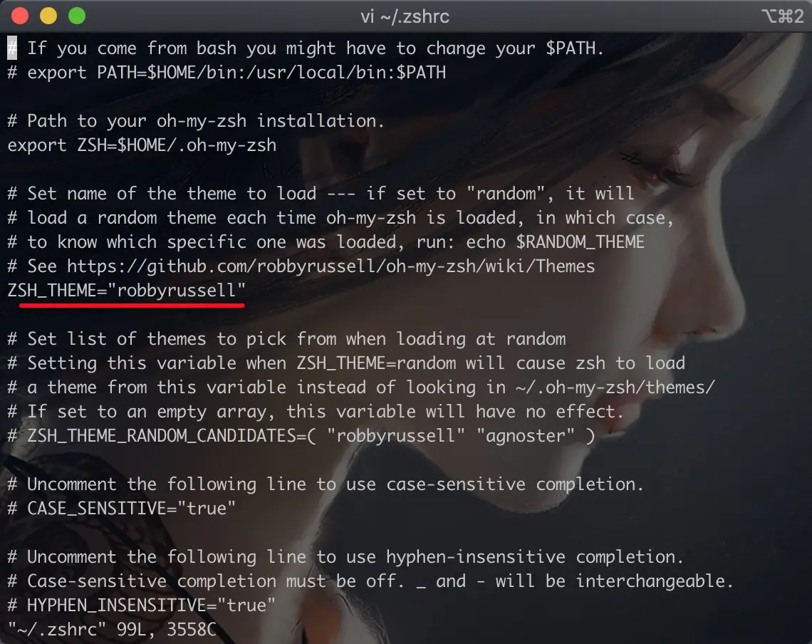 可以通过编辑.zshrc文件来修改你的主题