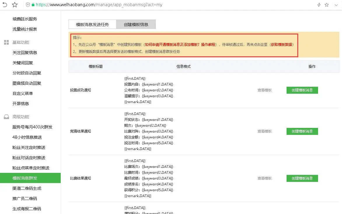 2、创建模板消息