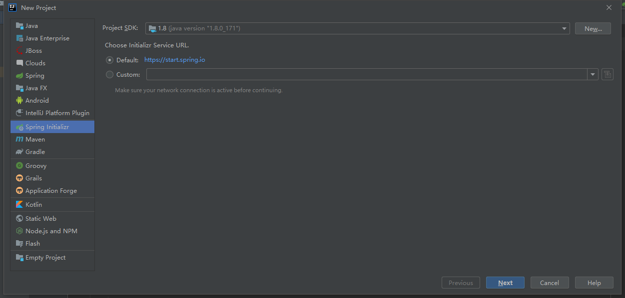 选择左侧Spring Initializr,选择jdk版本,点击Next