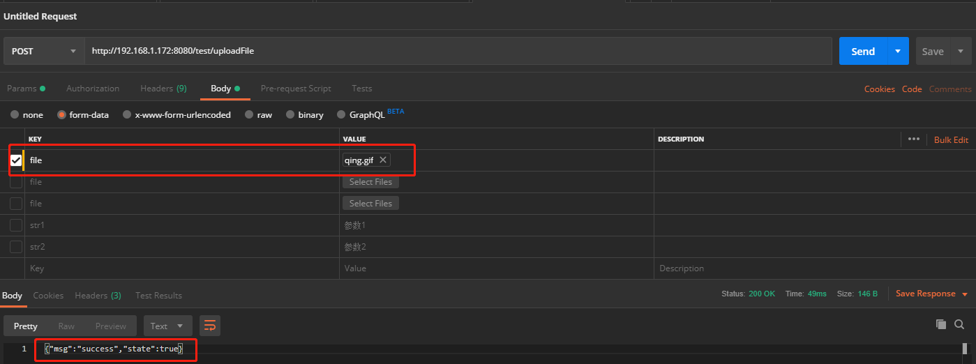 接口地址:http://192.168.1.172:8080/test/uploadFile