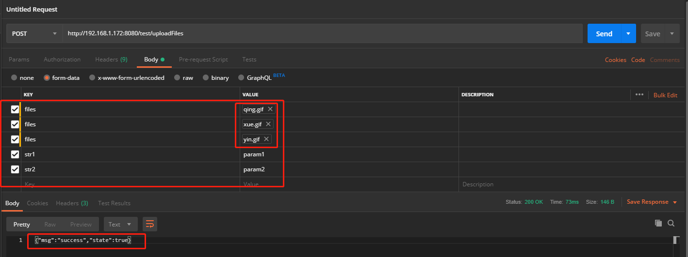 接口地址:http://192.168.1.172:8080/test/uploadFiles