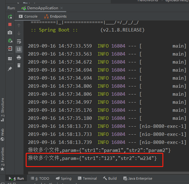 System.out.println("接收多个文件,param=" + JSON.toJSONString(multiParamTest));