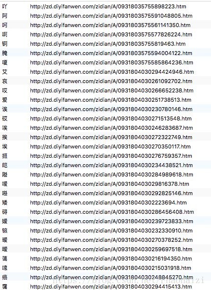 List<String> list = regexAll(all, "zidian/py/\\w+.htm");