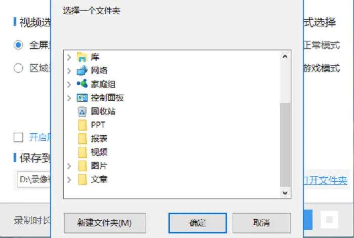 3、设置完成之后再选择一下视频保存的文件夹,在录屏结束后一般会有一个视频生成,这个文件夹就是保存这个视频的文件夹。