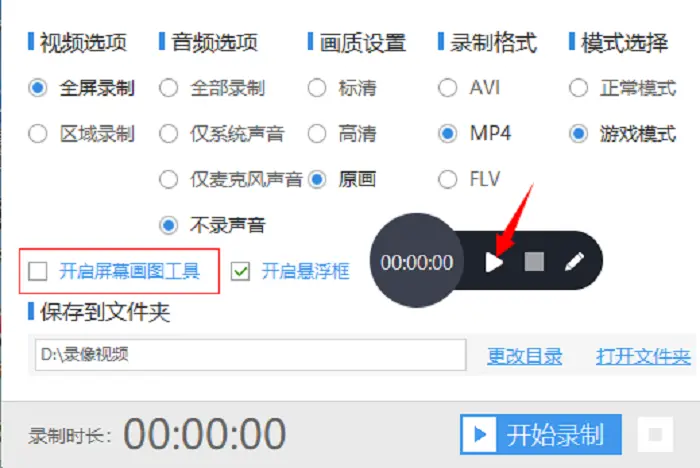 4、文件夹选择完成后点击“开始录制”进行电脑屏幕的录制。