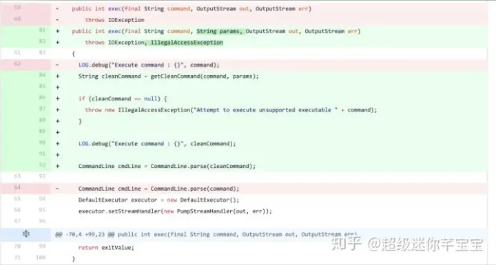通过对比漏洞修复前后的相关代码,其主要修改集中在yum/internal/task/CommandLineExecutor.java 这个文件。
