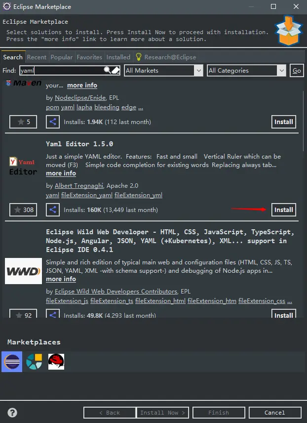 help -->EclipseMarketPlace -->搜索spring-->安装(如图)-->重启生效