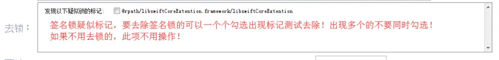 如果ipa包有签名锁,对出现的疑似锁标记,一一勾选尝试去除,有些包可能有多个锁!
