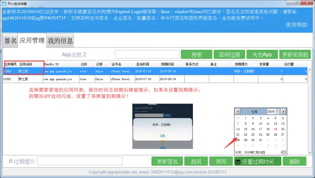 7、管理重签应用的到期日期与提示消息