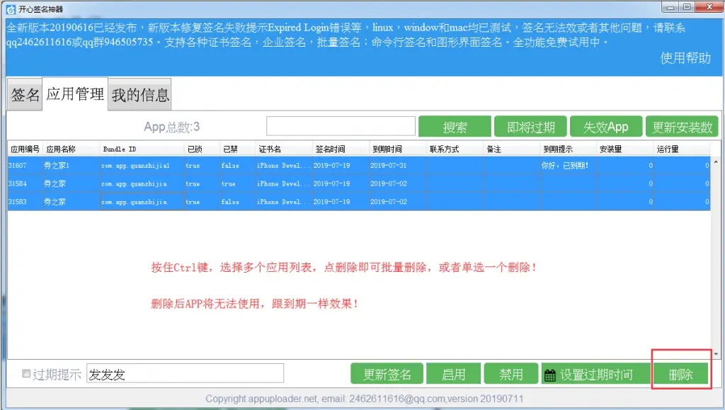 9、批量删除重签应用记录