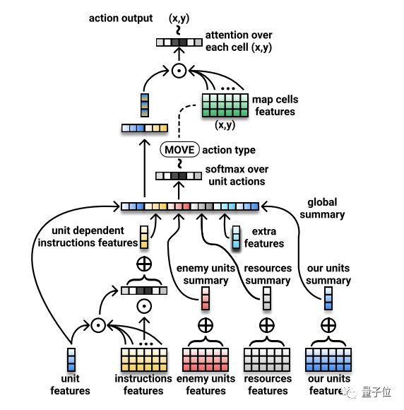 与AlphaStar这样直接模仿人类策略的AI不同,在MiniRTSv2中,Facebook AI尝试了一条新的路径,让AI先用自然语言生成计划,再交由单独的模型执行操作。
