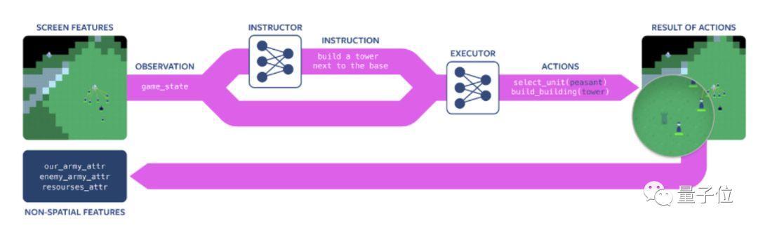 由于用来训练指导网络的数据集来自于人类语言,指导网络并不能直接形成原始的指令句,所以AI不得不学习推理,“理解”自然语言,而后制定战略计划并予以实施。
