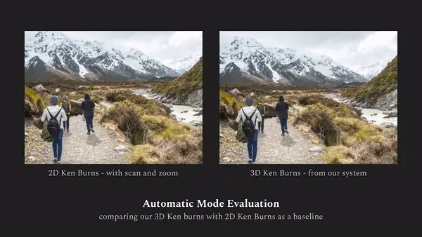 8位志愿者参与到了这个测试之中。团队为每个志愿者分配了一张静态图,并提供了人类作品作为参考,要求志愿者使用新方法和Adobe After Effects模板、移动App Viewmee这两种Ken Burns制作工具创作类似的效果。