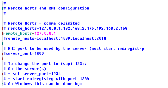 打开文件,并找到remote_hosts=127.0.0.1这一行,修改为server服务器的列表,如下所示,如果server有多个,那么多个机器地址之间使用英文逗号分隔: