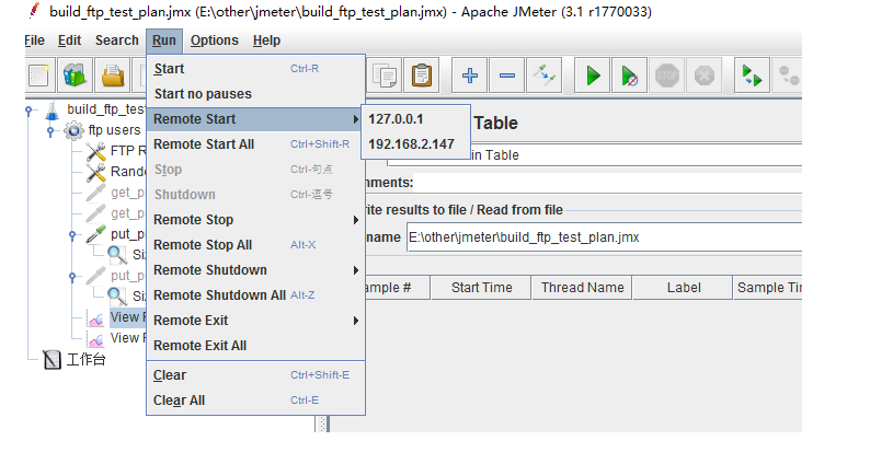 此时可以启动一个远程机器,也可以选择下面的“远程全部启动”,同时启动所有的server。点击后,client端会自动和server端的服务建立连接,下发测试脚本到server端;等server端的测试全部结束后,会将测试结果汇总到client端,我们在client端配置的监听器就能看到测试结果了。
