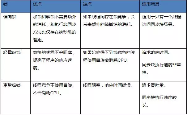 偏向锁 vs 轻量级锁 vs 重量级锁