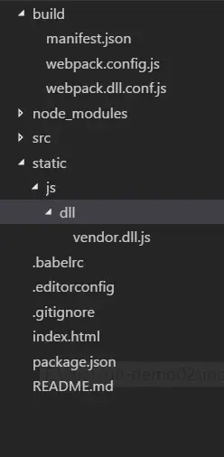 在执行命令之前,需要在项目中建立static/js文件夹,用于存放打包生成的第三方库的js,执行命令:npm run dll,随后就在static/js中生成vendor.dll.js啦,同时在build文件夹中也生成manifest.json文件啦: