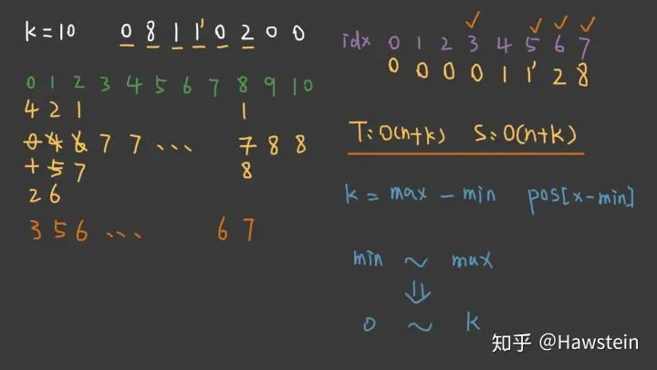 // Time(avg): O(n+k), Time(worst): O(n^2), Space: O(n)