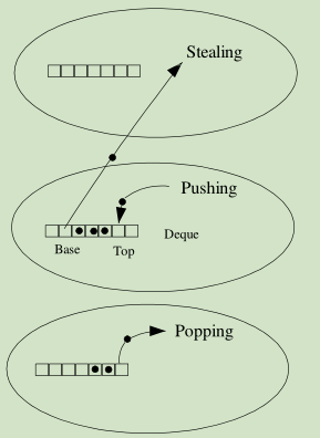 - 当一个工作线程处理完自己队列中数据的时候,会随机挑选一个工作线程,并“窃取”的该工作线程队列队尾的task。