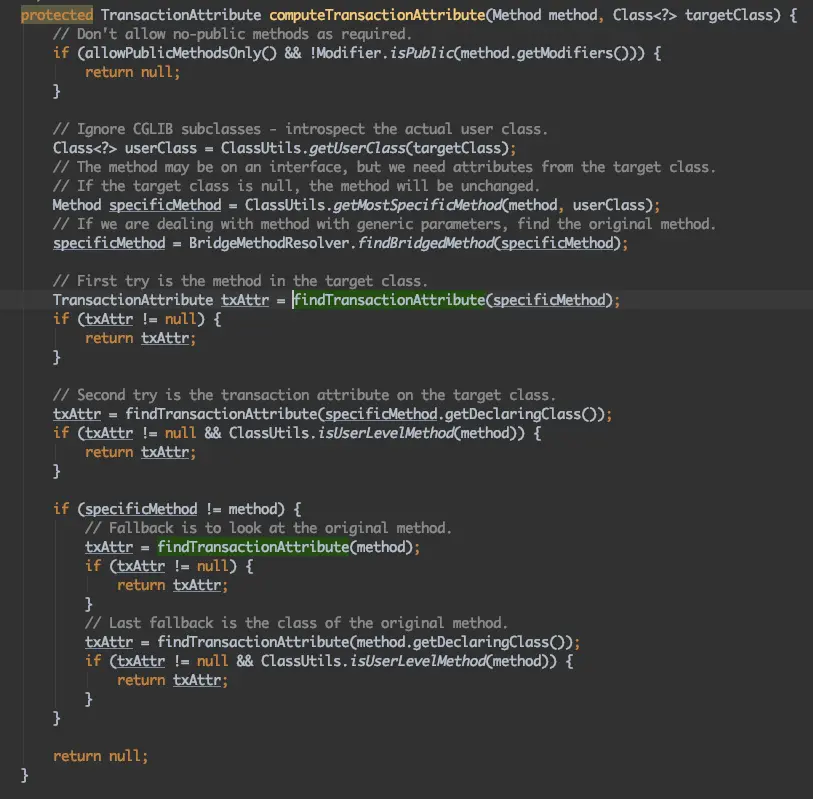AbstractFallbackTransactionAttributeSource.computeTransactionAttribute