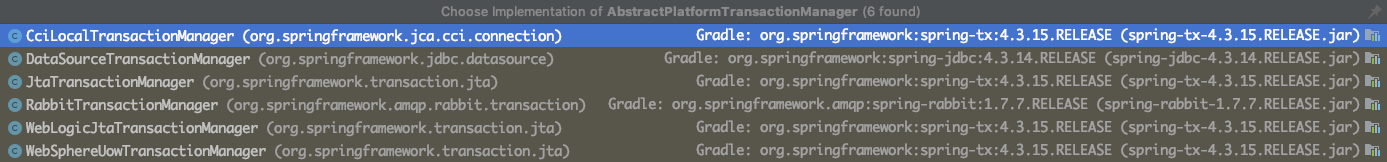 我们可以关注一下DataSourceTransactionManager和RabbitTransactionManager,是抽象类的一个实现.DataSourceTransactionManager的具体实现是通过Java提供的接口实现.而RabbitTransactionManager则是自己实现(毕竟已经属于定制了)