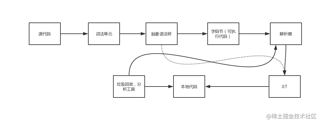 - JIT:将字码节或者抽象语法树转换为本地可执行代码。