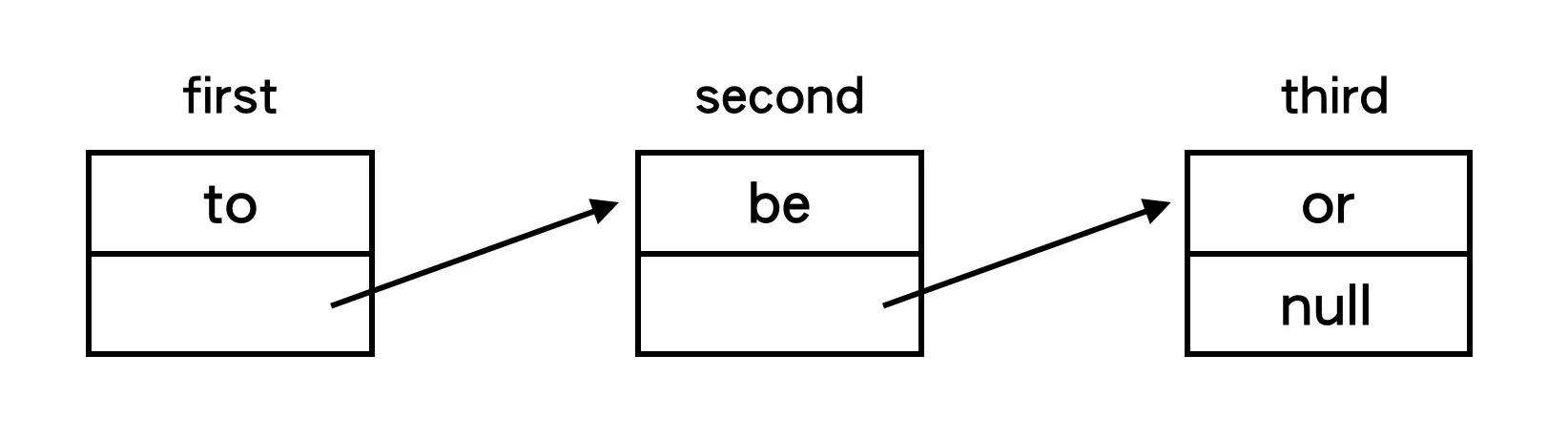 这里 third.next 还是 null 的值,也就是说 third 指向的是 null ,我们看这个图:
