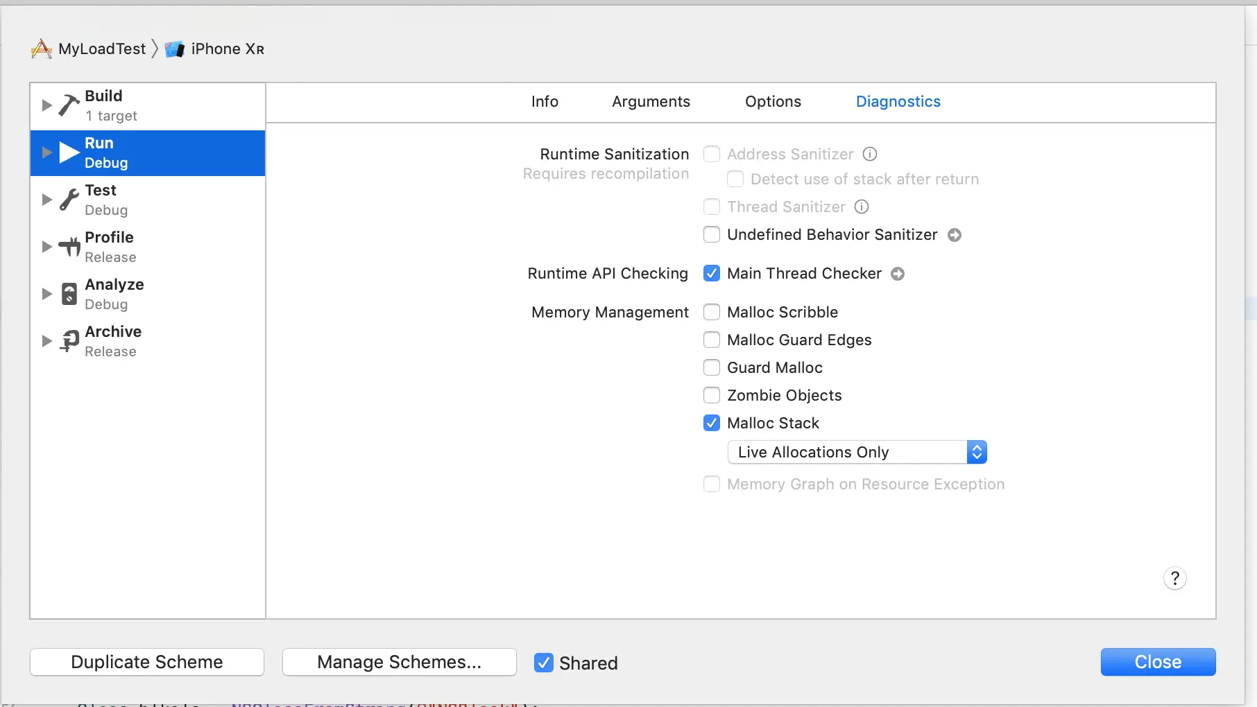 在项目工程中打开Edit Scheme... 在出现的如下界面: