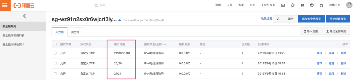 -p 为映射端口 -p 20:20 表示将宿主机20端口映射到docker容器的20端口,-p 21:21 表示将宿主机21端口映射到docker容器的21端口, -p 21100-21110:21100-21110 表示将宿主机的21100到21110端口映射到docker容器的21100到21110端口