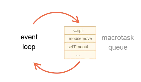 For instance, while the engine is busy executing a script, a user may move their mouse causing mousemove, and setTimeout may be due and so on, these tasks form a queue, as illustrated on the picture above.