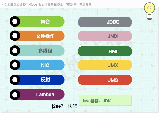 jdk的代码非常庞大,内容也非常繁杂。最重要的大体包括:集合、多线程、NIO、反射、文件操作、Lambda语法等。这部分内容加上下面的SSM,基本上就是大多数小伙伴玩耍的地方。