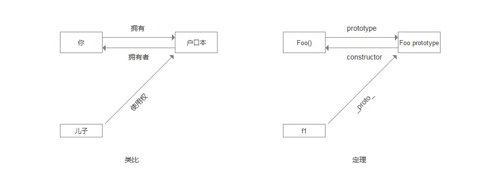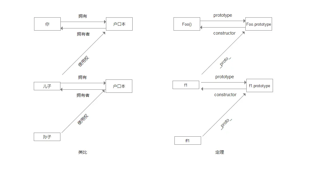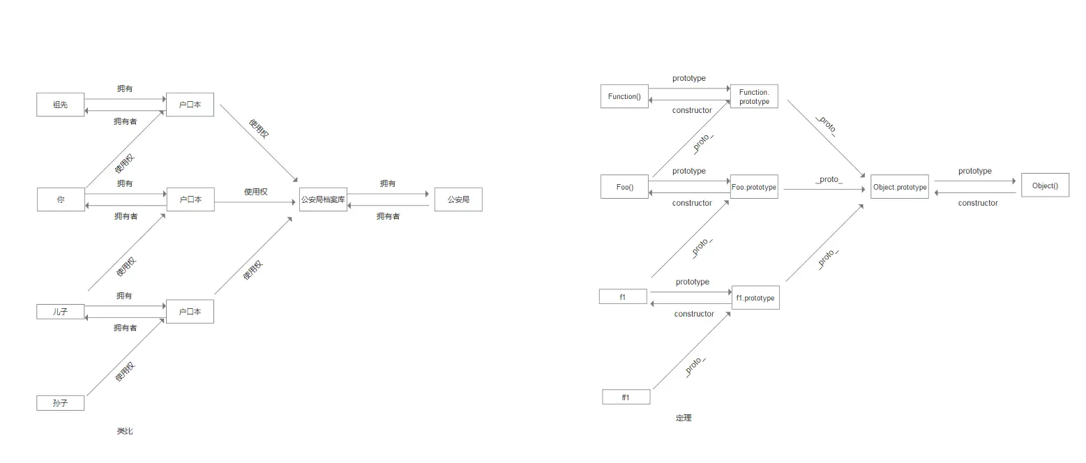 上面这个图就显示了最官方的原型链的结构图,也是问我问题那个小伙子百思不得其解的,如果把这个图抽象成家庭财产继承问题就没有那么困惑了我认为。