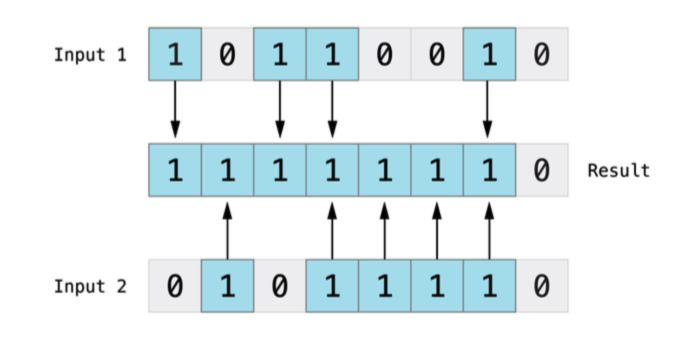 位或运算符( | )可以对两个比特位进行比较,然后返回一个新的数,只要两个操作位任 意一个为 1 时,那么对应的位数就为 1 。
