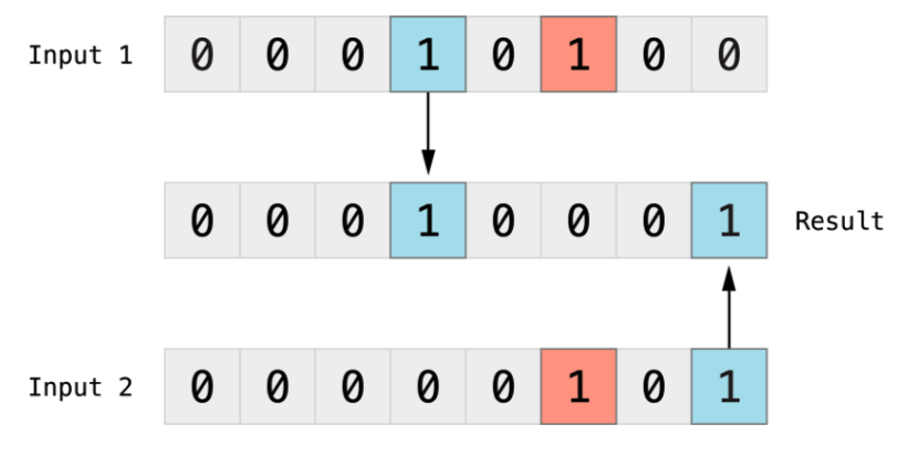 位异或运算符,或者说“互斥或”( ^ )可以对两个数的比特位进行比较。它返回一个 新的数,当两个操作数的对应位不相同时,该数的对应位就为 1 。